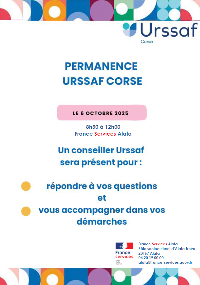➡ Pour la première fois un conseiller Urssaf sera présent à la France Services Alata le lundi 6 octobre 2025 de 8h30 à 12h00.
