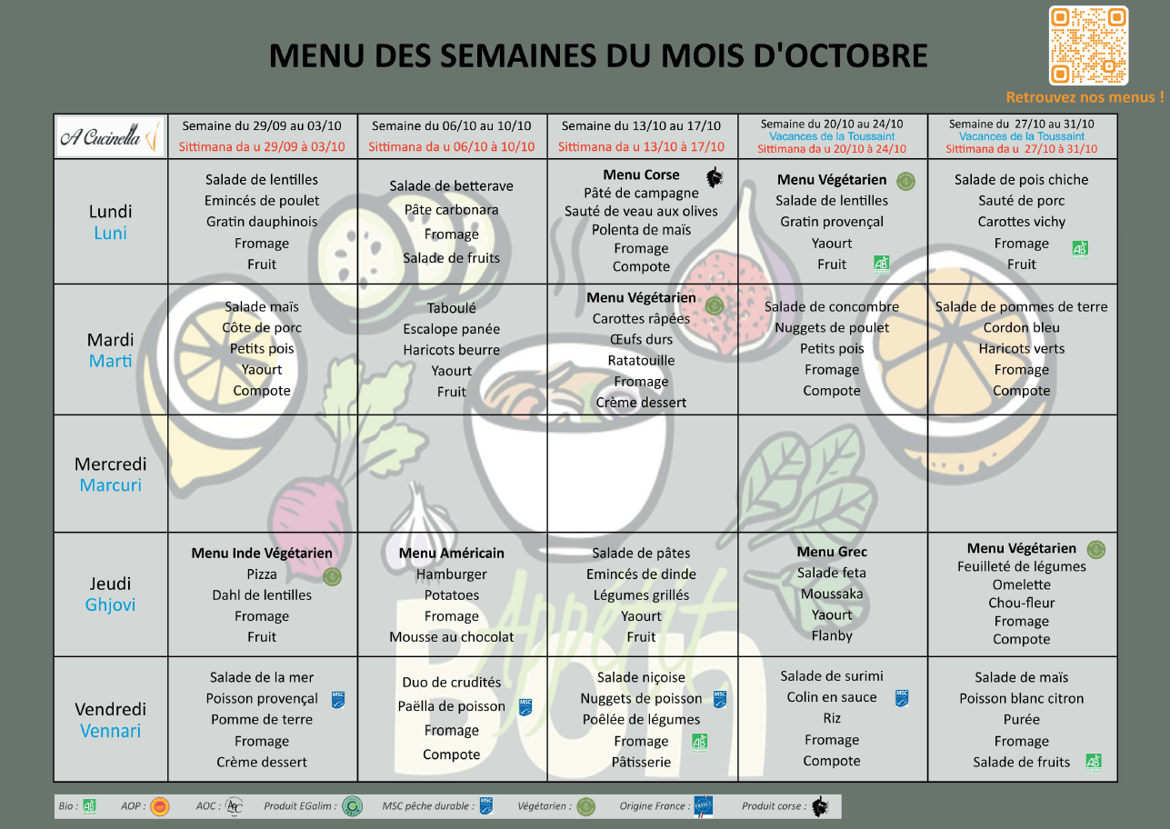 Menu cantine octobre 2025